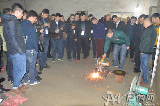2017年12月11日上午,參加會(huì)議的代理商們陸續(xù)抵達(dá)盛森磨具工廠,并在盛森磨具董事長(zhǎng)許群英的帶領(lǐng)下分別參觀兩個(gè)廠區(qū)。車間內(nèi),許群英向各代理商伙伴展示了公司最新的切片產(chǎn)品。據(jù)悉,盛森磨具于今年成功研發(fā)出三代不銹鋼切割片,無(wú)論是從產(chǎn)品的切削力度還是耐磨性,都較傳統(tǒng)切片有了更大的提升和突破。為了更直觀地向來(lái)訪的各位代理商伙伴們展示產(chǎn)品在實(shí)際操作過(guò)程中的使用情況,盛森磨具技術(shù)人員在車間內(nèi)為大家進(jìn)行產(chǎn)品的現(xiàn)場(chǎng)切削演示。